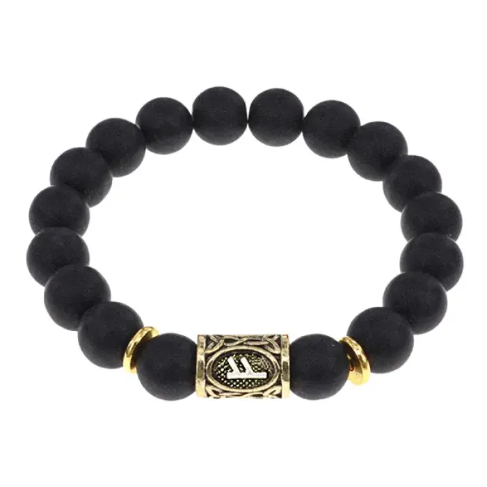Браслет с руной Феху и синтетическим камнем Шунгит BSRF-17-24