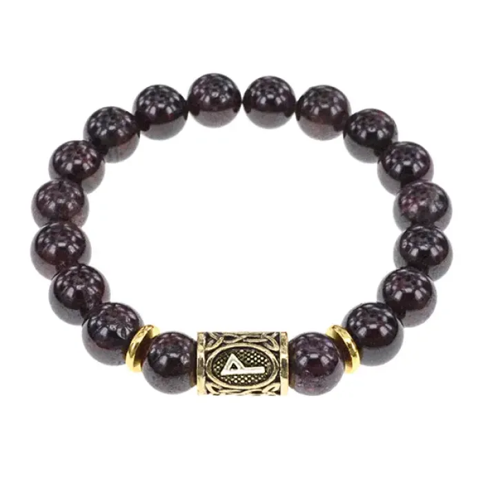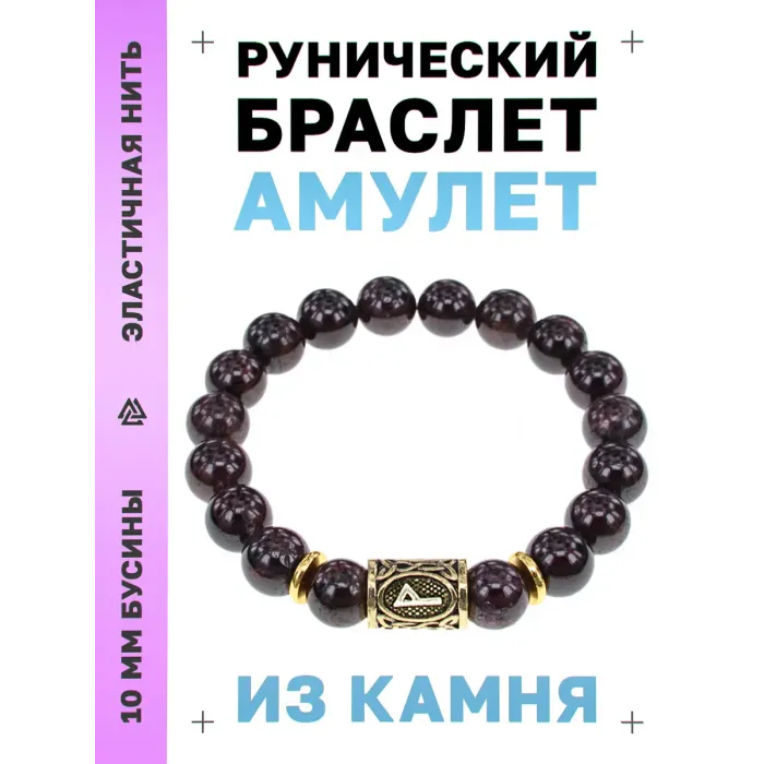 Стрейч-браслет с руной Вуньо и натуральным камнем гранат.