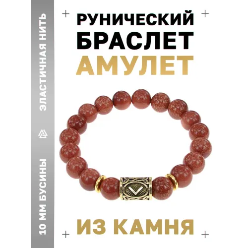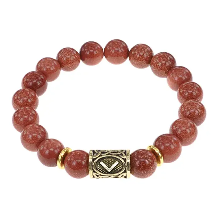 Браслет с символом руны Кеназ и бусинами из синтетического коричневого авантюрина.