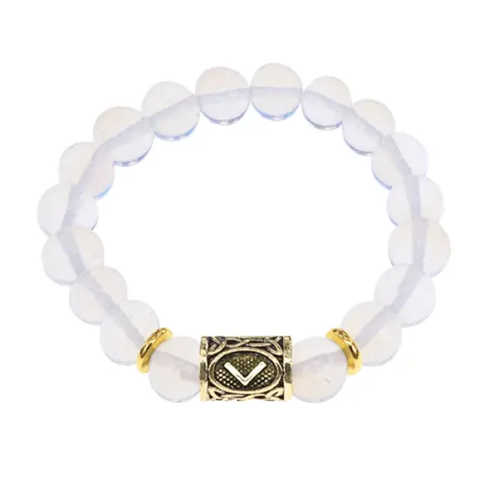 Стрейч-браслет с руной Кеназ и синтетическим лунным камнем.