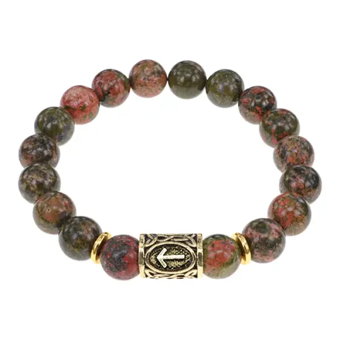 Стрейч-браслет с руной Тейваз и бусинами из натурального унакита.