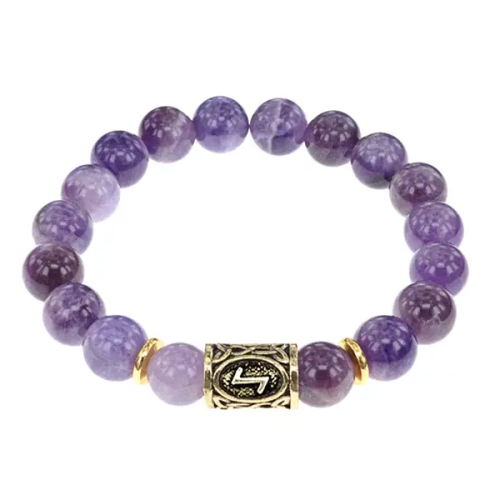 Рунический браслет с натуральным аметистом и символом руны Эйваз.