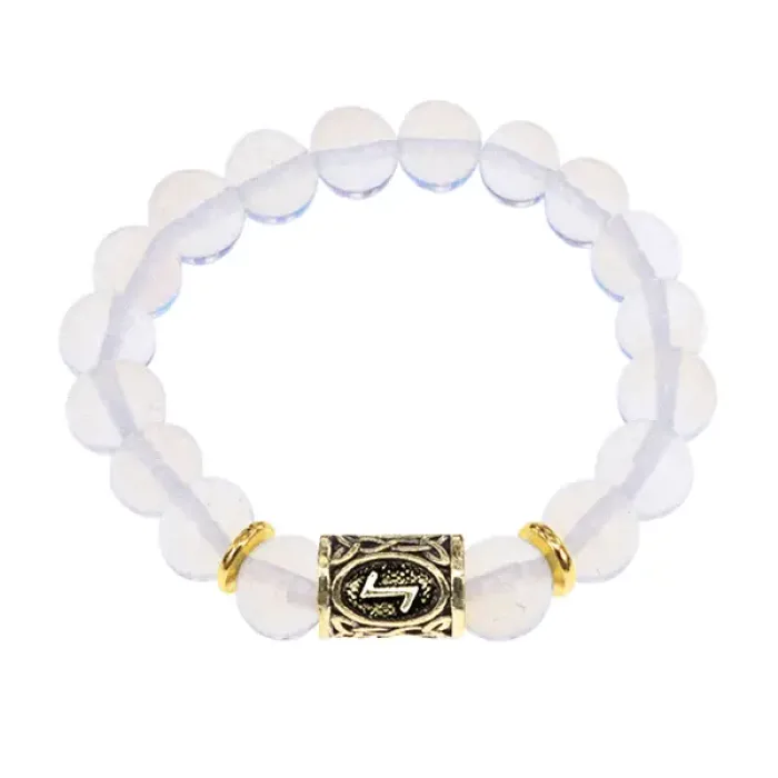Браслет с руной Эйваз и синт. камнем Лунный камень BSRF-22-11