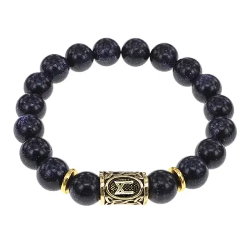 Браслет с руной Манназ и синт. камнем Синий авантюрин BSRF-23-02