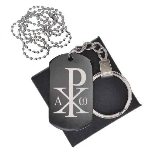 Сувенирный жетон из нержавеющей стали с чернением и гравировкой монограммы Христа.