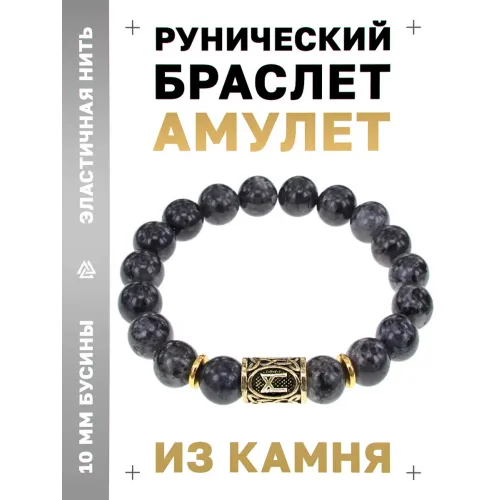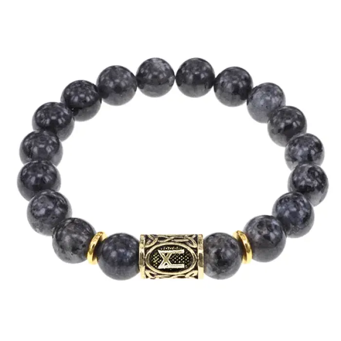 Браслет с символом руны Манназ и бусинами из натурального камня лабрадор.