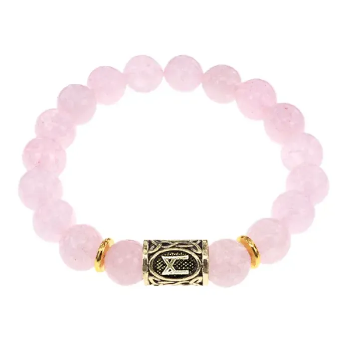 Браслет с символикой руны Манназ и натуральным камнем розовый кварц.