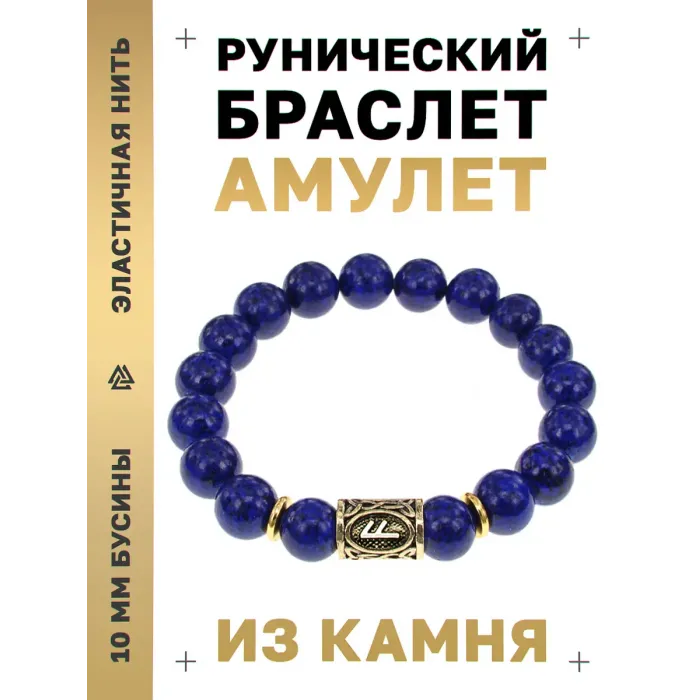 Стрейч-браслет с руной Ансуз и бусинами из натурального лазурита.