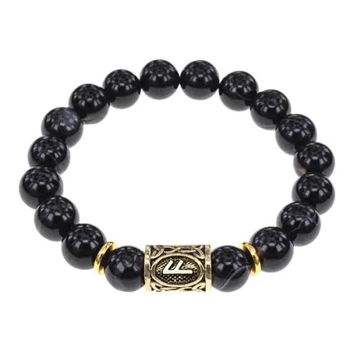 Браслет с руной Ансуз и натуральным камнем черный агат.