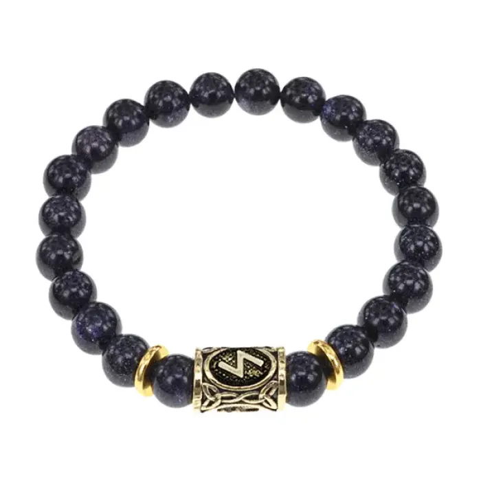 Браслет с руной Соулу и синт.камнем Синий авантюрин BSRG-01-02