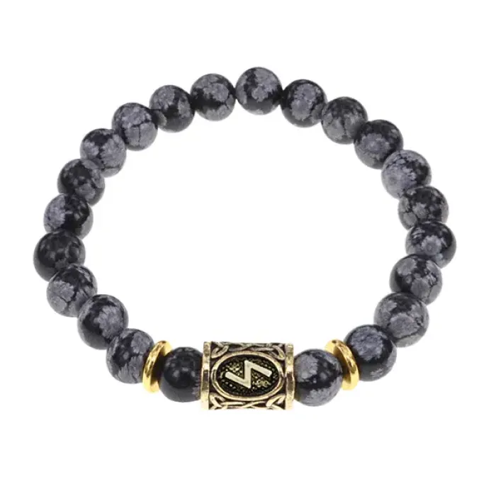 Стрейч-браслет с руной Соулу, выполненный из натурального снежного обсидиана.