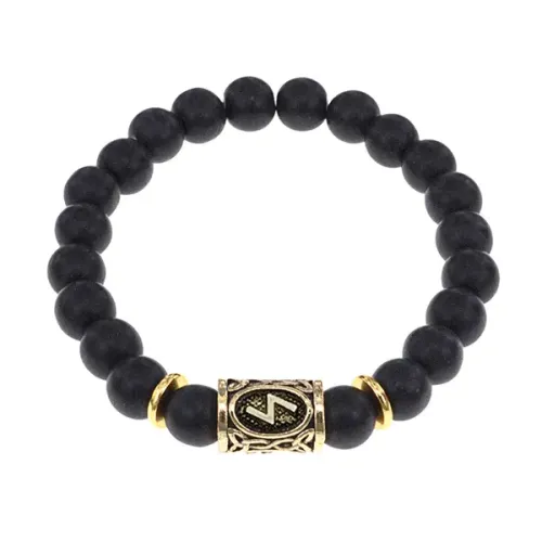 Браслет с руной Соулу и синтетическим камнем шунгит.