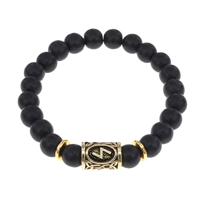 Браслет с руной Соулу и синт.камнем Шунгит BSRG-01-24