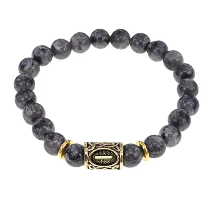 Стрейч-браслет с руной Иса, выполненный из натурального камня лабрадор.