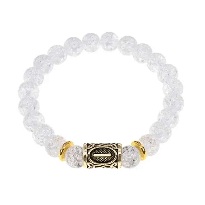Браслет с руной Иса и синт.камнем Сахарный кварц BSRG-02-16