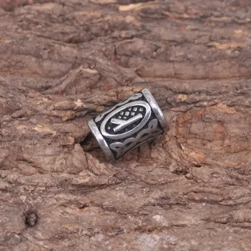 Бусина для украшения причёсок, бород и косичек или создания бижутерии из нержавеющей стали со славянской руной Алатырь.
