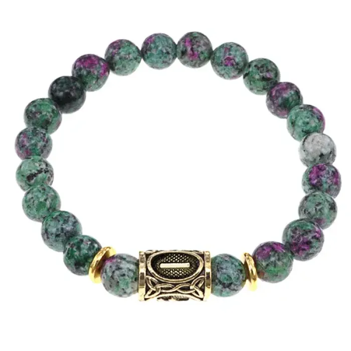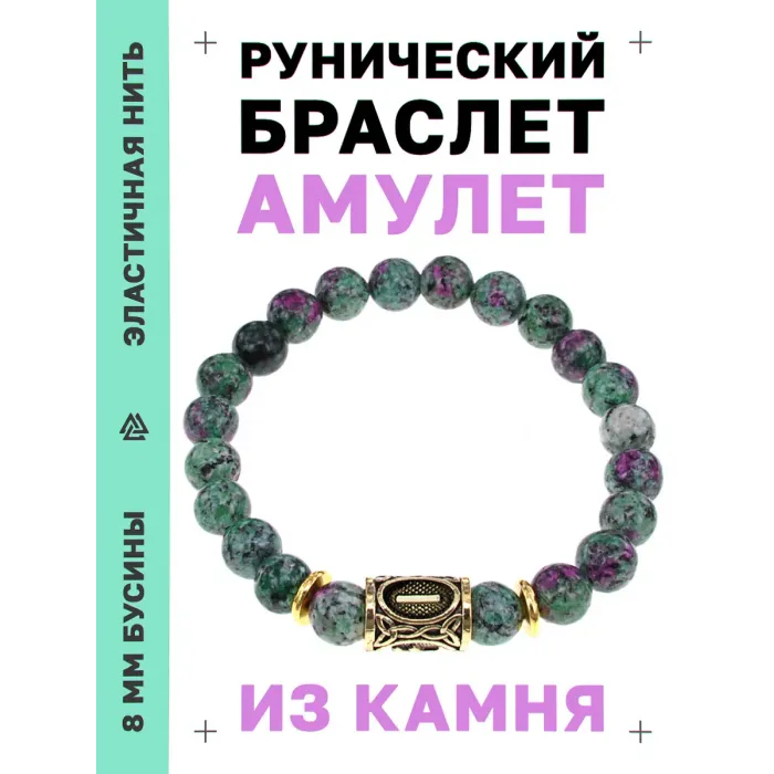 Рунический стрейч-браслет с символом Иса и бусинами из синтетического камня.