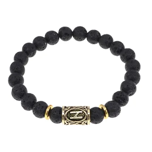 Браслет-амулет с символом руны Хагалаз, выполненный из натурального камня лава (базальт) в виде стрейча.