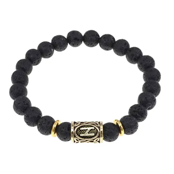 Браслет с руной Хагалаз и натуральным камнем Лава BSRG-04-09