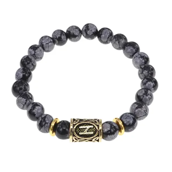 Браслет с руной Хагалаз и нат.камнем Снежный обсидиан