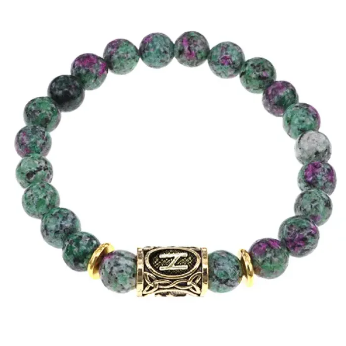 Браслет с руной Хагалаз и синт.камнем Цоизит BSRG-04-22