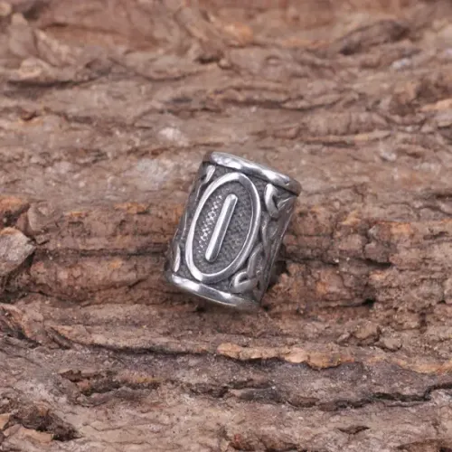 Бусина для украшения причёсок, бород и косичек, а также элемент для бижутерии из нержавеющей стали с изображением славянской руны Исток.