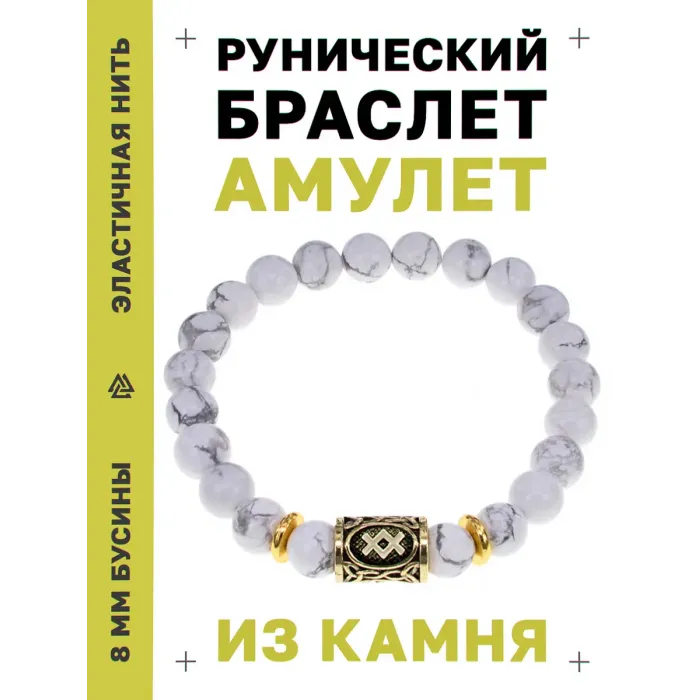 Браслет с руной Ингуз и нат.камнем Кахолонг BSRG-05-07