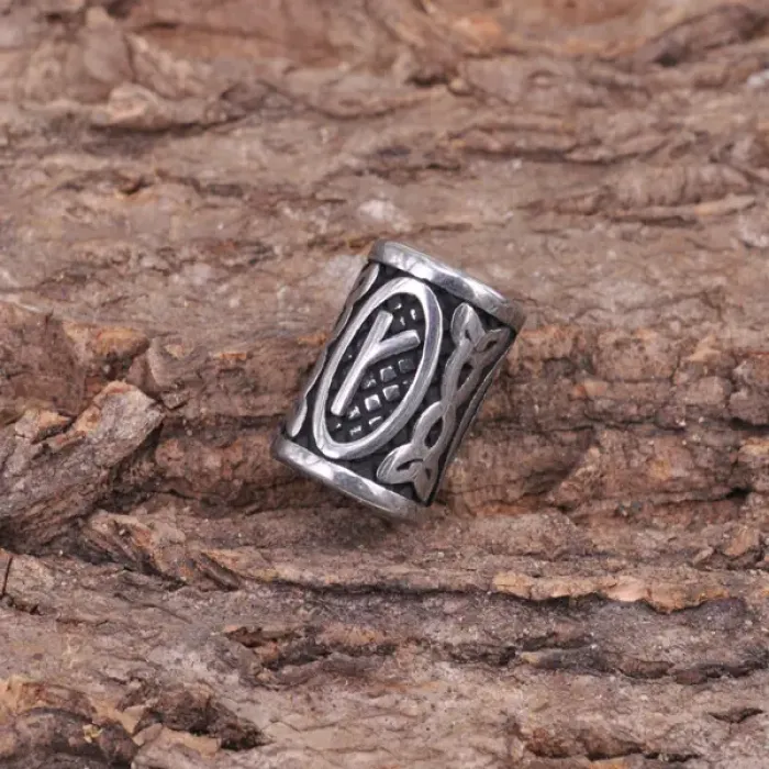 Бусина для создания украшений и аксессуаров из нержавеющей стали с изображением славянской руны Крада.