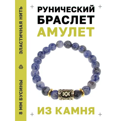 Стрейч-браслет с руной Ингуз и бусинами из натурального содалита.