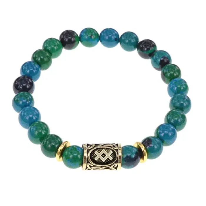 Браслет с руной Ингуз и синтетическим камнем хризоколла.