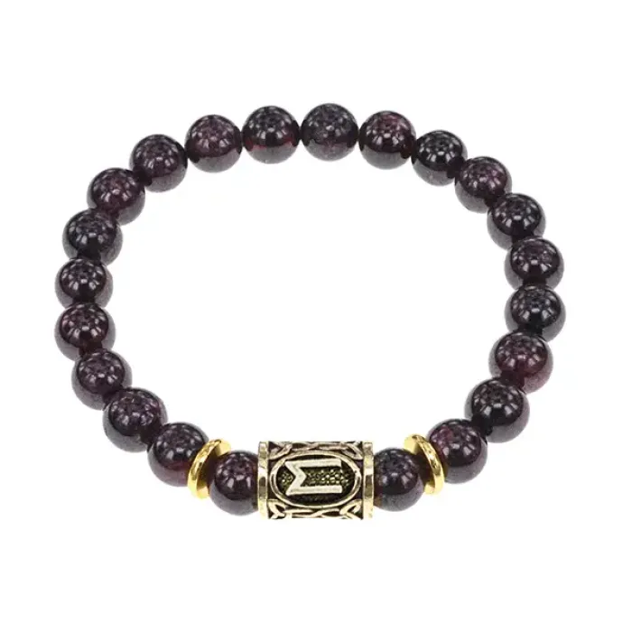 Браслет с руной Эваз и натуральным камнем гранат.