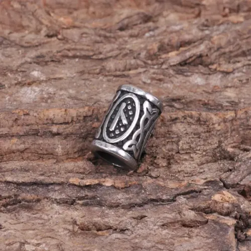 Бусина для создания аксессуаров из нержавеющей стали с изображением славянской руны Нужда.