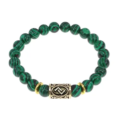 Браслет с руной Йера и синт.камнем Малахит BSRG-07-12
