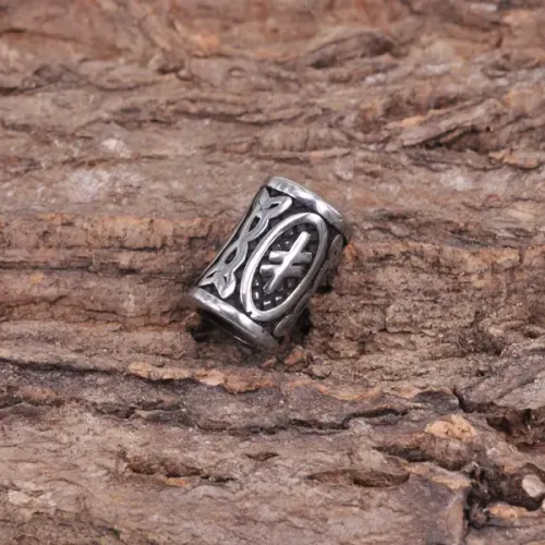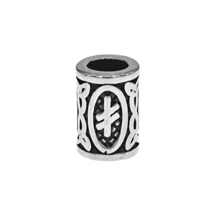 Бусина для украшения волос или бороды из нержавеющей стали с изображением славянской руны Опора.