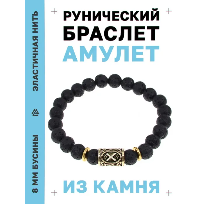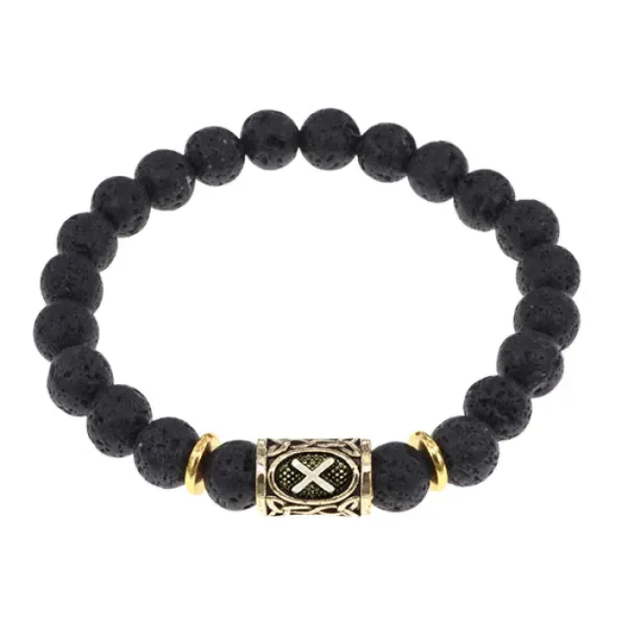 Стрейч-браслет с руной Гебо из натурального камня лава.
