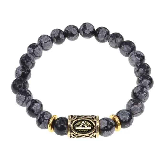 Браслет-оберег из натурального камня снежный обсидиан с руной Турисаз.