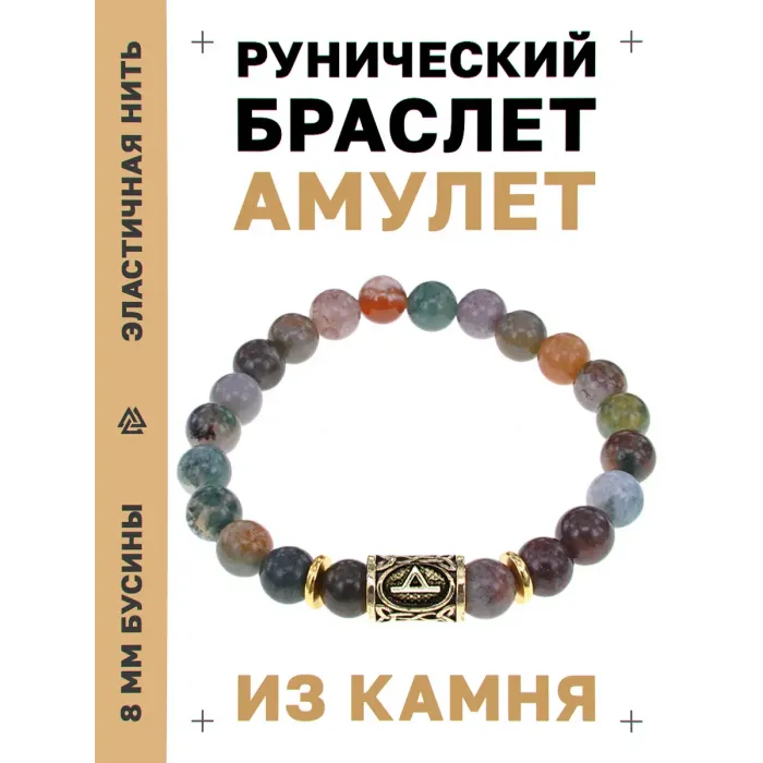 Стрейч-браслет с символом руны Турисаз и бусинами из натуральной яшмы.