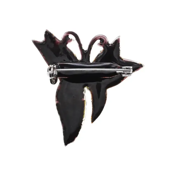 Брошь-булавка в форме бабочки из металла с покрытием под серебро и эмалью.