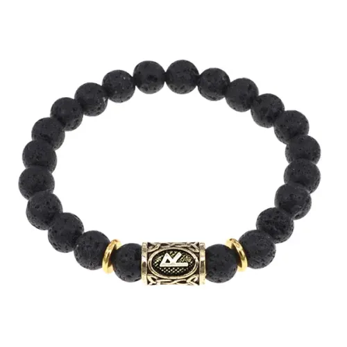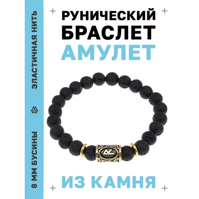 Стрейч-браслет с руной Райдо и натуральным камнем лава.