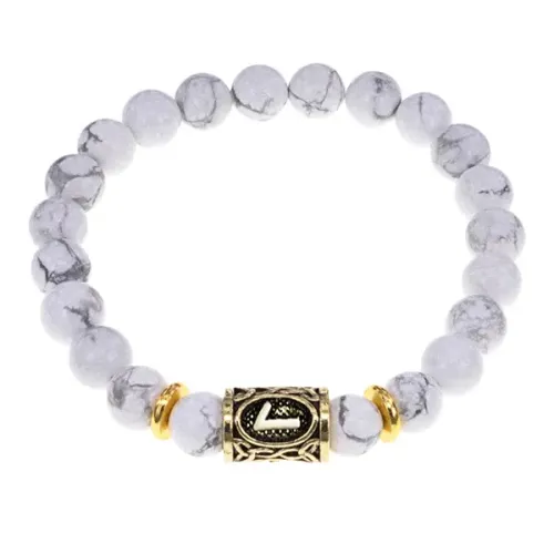 Стрейч-браслет с руной Лагуз, выполненный из натурального камня кахолонг.