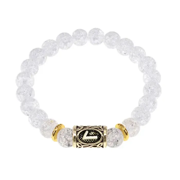 Браслет с руной Лагуз и синт. камнем Сахарный кварц BSRG-11-16