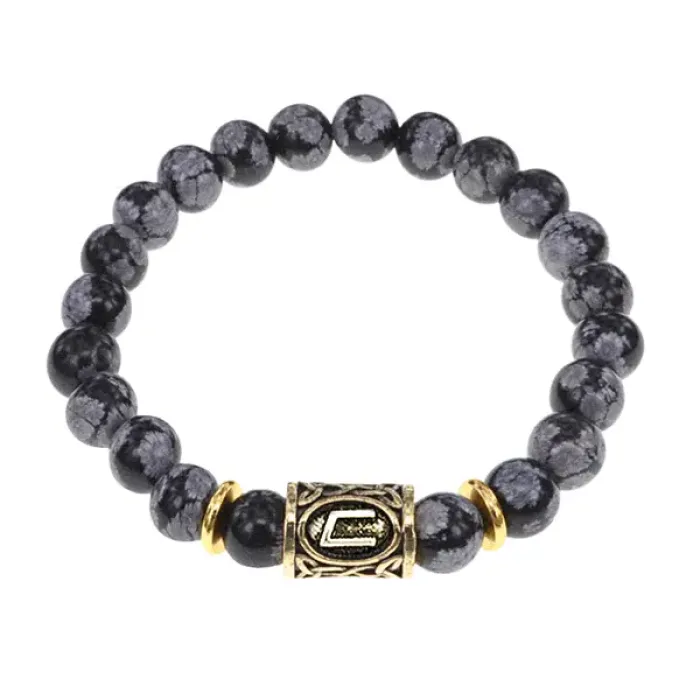 Стрейч-браслет с руной Уруз, выполненный из натурального камня снежный обсидиан.