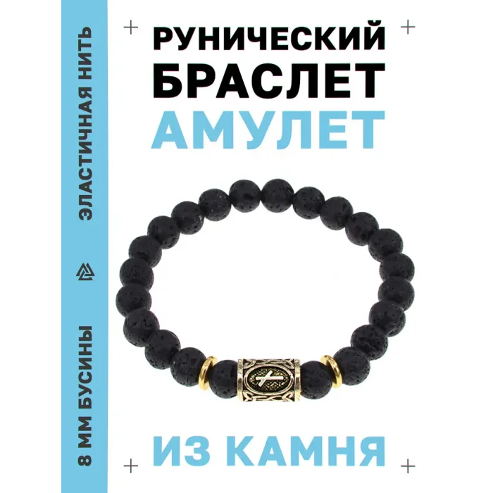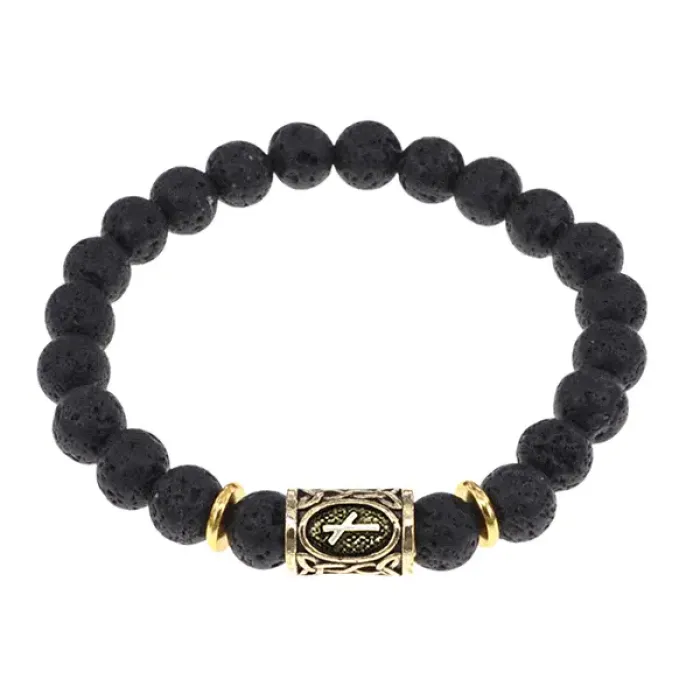 Стрейч-браслет с руной Наутиз, выполненный из натурального камня лавы.