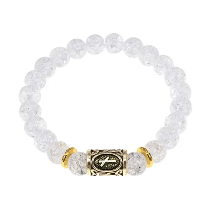 Стрейч-браслет с руной Наутиз и бусинами из синтетического камня Сахарный кварц.