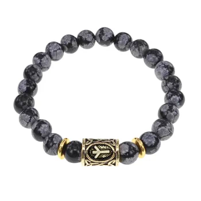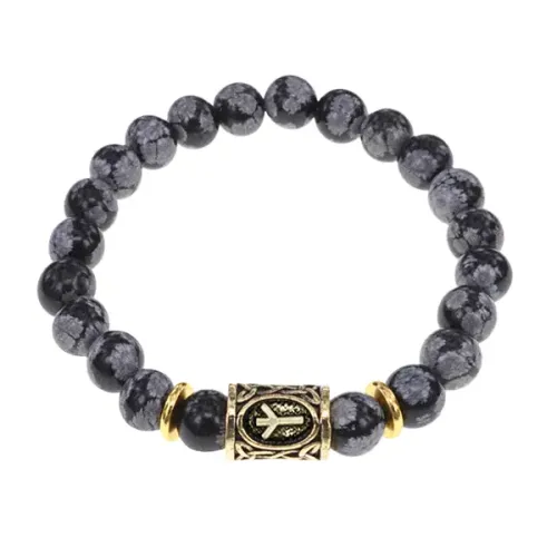 Браслет с руной Альгиз и нат. камнем Снежный обсидиан BSRG-16-14