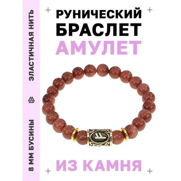 Браслет с руной Феху и синт. камнем Коричневый авантюрин BSRG-17-01