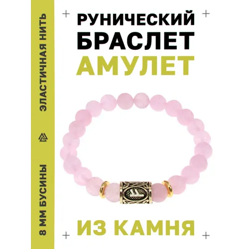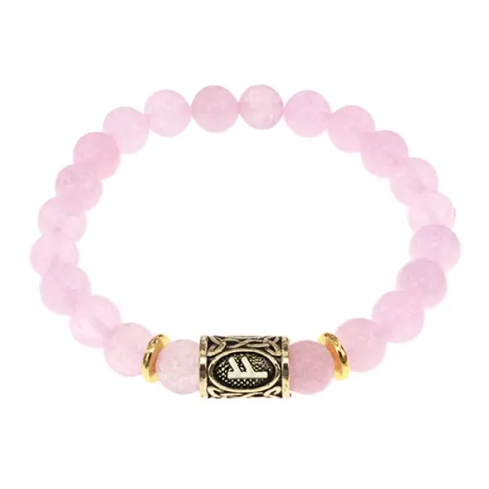 Стрейч-браслет с символом руны Феху и бусиной из натурального розового кварца.