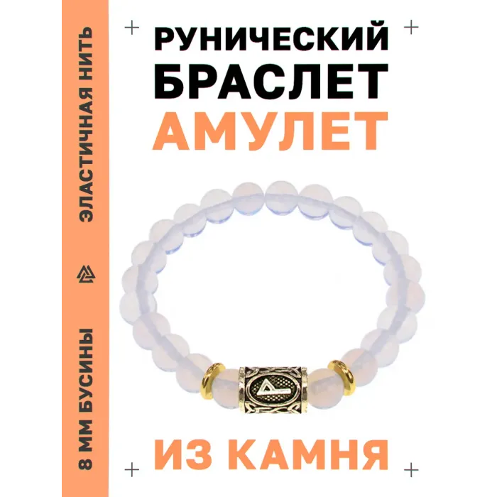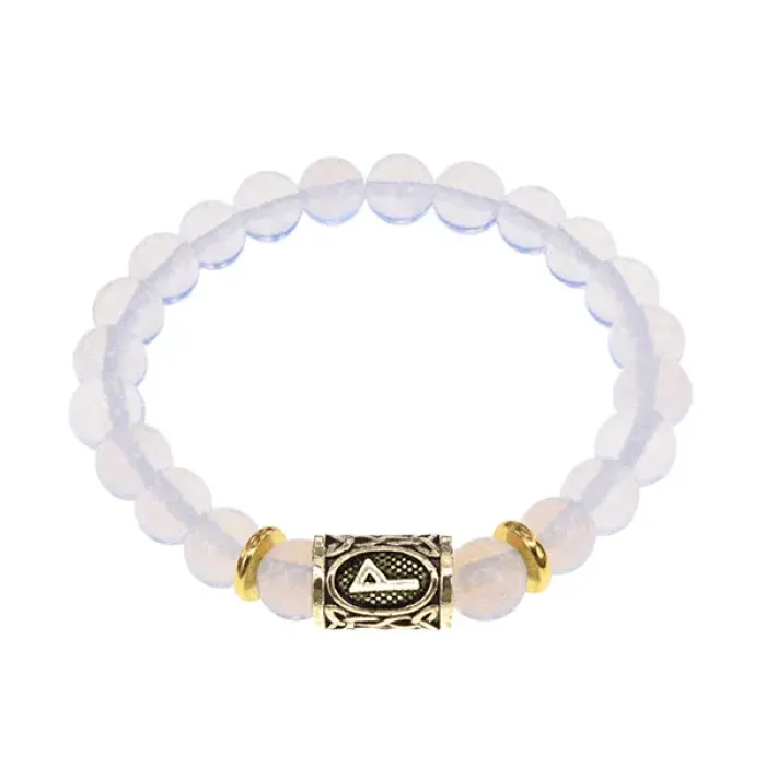 Браслет-стрейч с символом руны Вуньо и синтетическим лунным камнем.