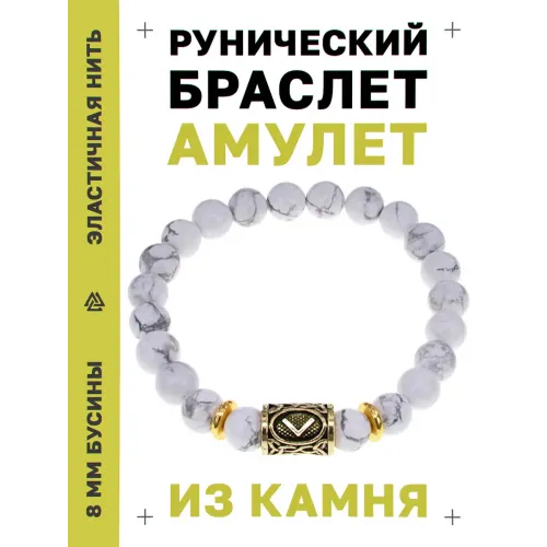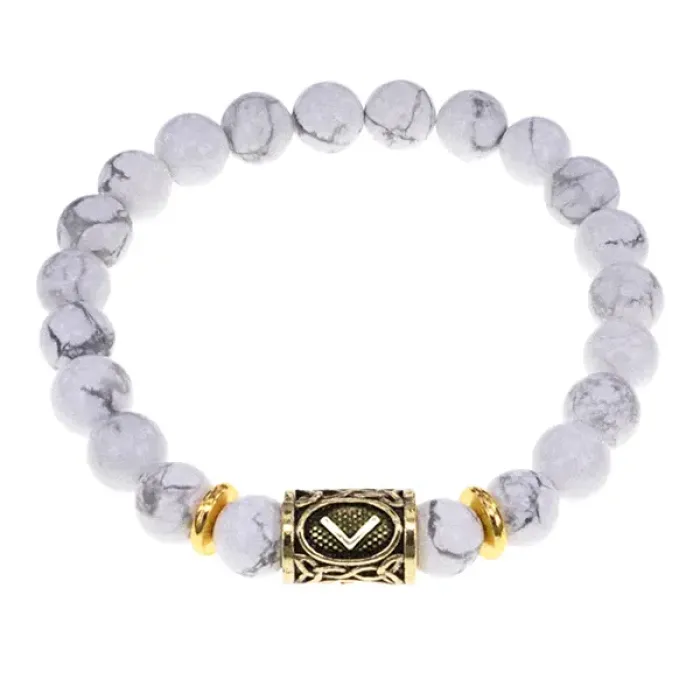 Браслет-стрейч с натуральным камнем кахолонг и символом руны Кеназ.