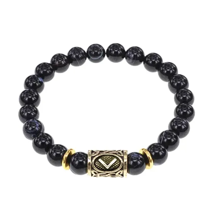 Браслет с руной Кеназ и нат. камнем Черный агат BSRG-19-23